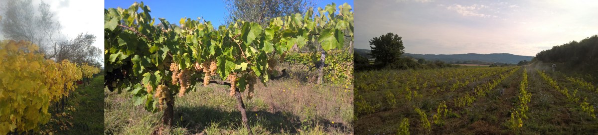 Qui abbiamo viti di Procanico, con i suoi grappoli bianchi tendenti al rosa e viti di Greghetto, il Sangiovese locale.